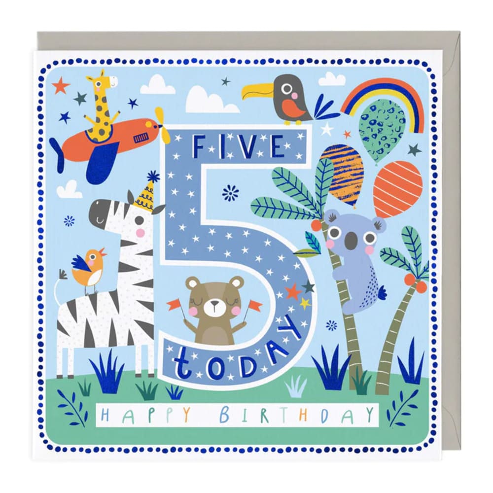 5 Today – colourful party animals card with the image of brightly coloured animals. Card is left blank for your own special message