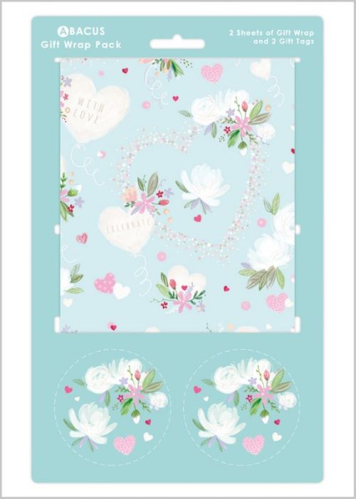Two sheets of folded gift wrap and two die-cut, self-adhesive gift tags are included in the “Love Heart” design. Gift Tag has a diameter of 70mm and a sheet size of 500 x 700mm.