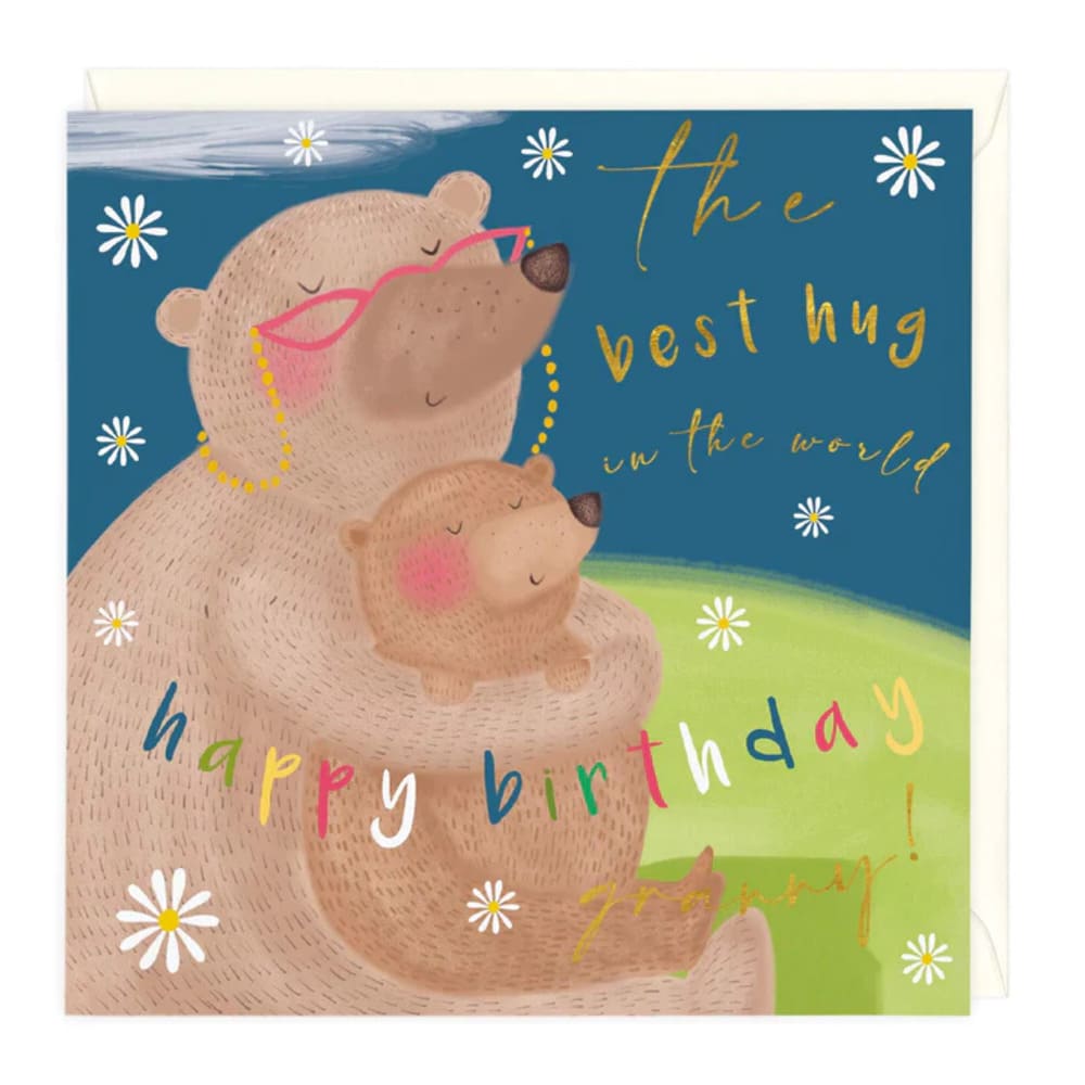 “The Best Hug in the World Happy Birthday Granny!” Card is blank inside for your own special message.