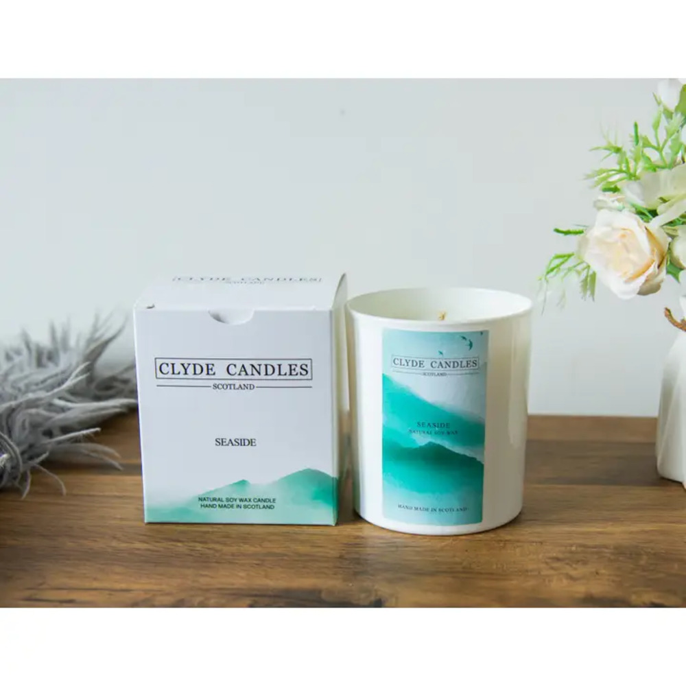Clyde Candles Seaside candle – Notes of seaweed, green algae, sea salt & water lily. An absolutely gorgeous scent from Clyde Candles
