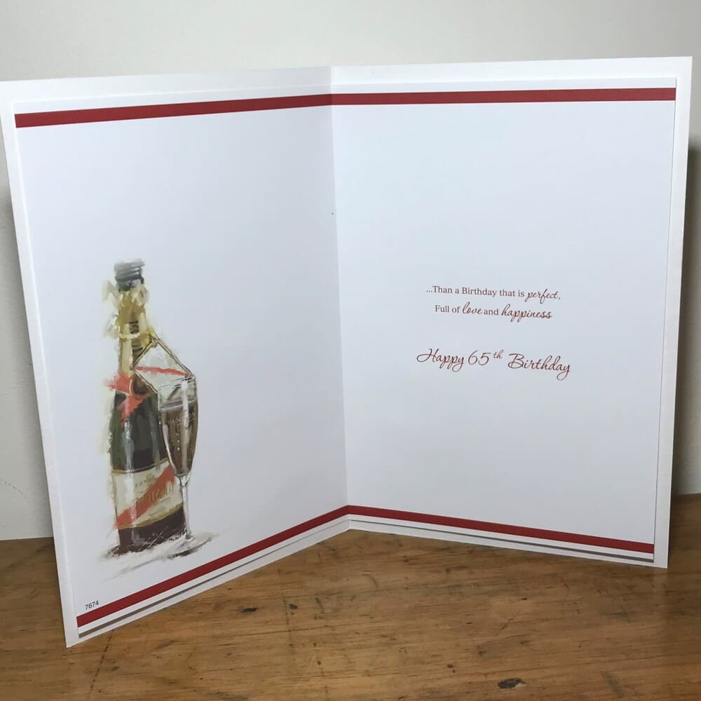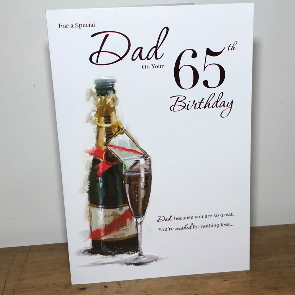 “For a special Dad on your 65th Birthday – Dad because you are so great, you’re wished for nothing less…” with the message inside “…than a Birthday that is perfect, full of love and happiness. Happy 65th Birthday”
