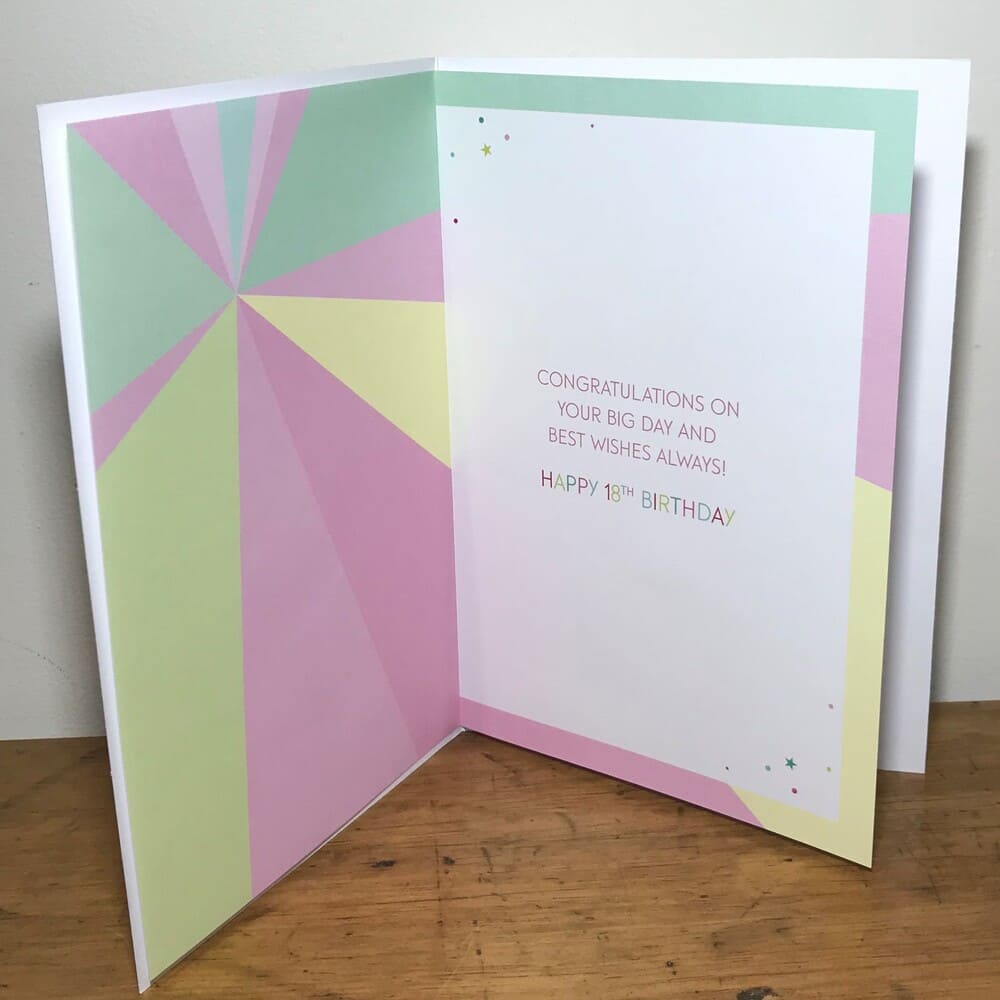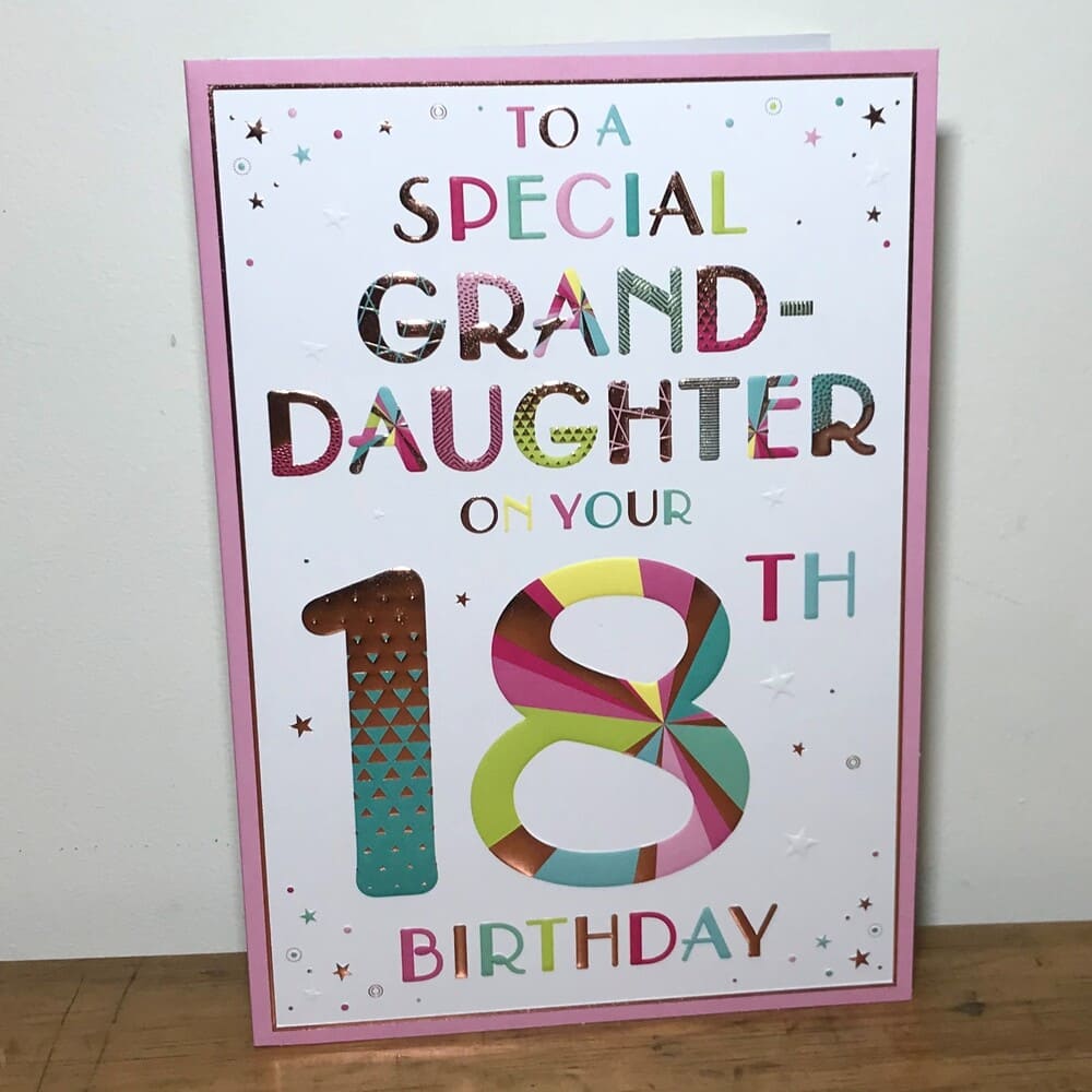 “To a special Granddaughter on your 18th Birthday” Message inside reads “Congratulations on your big day and best wishes always! Happy 18th Birthday”