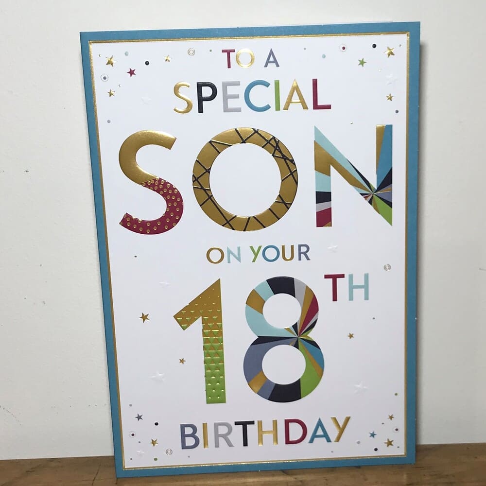 “To a special Son on your 18th Birthday” with the message inside reading “Congratulations on your big day and best wishes always! Happy 18th Birthday”