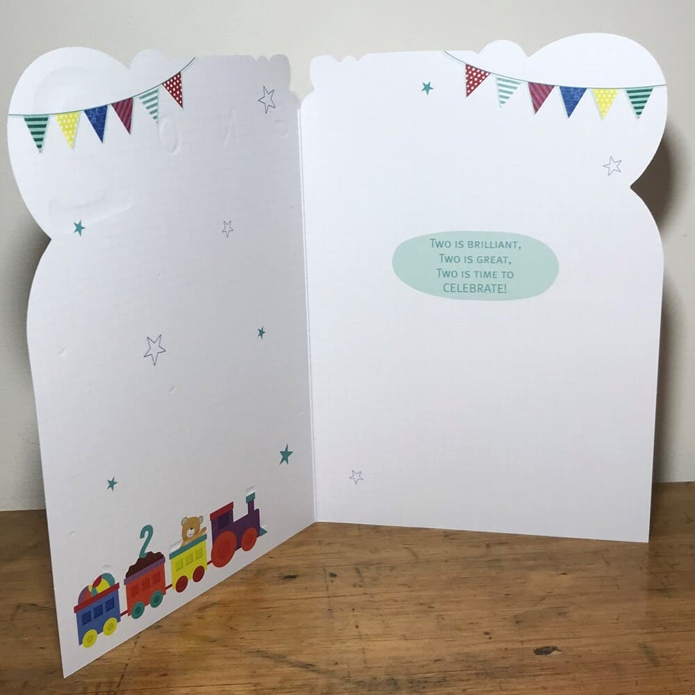 “To a wonderful Grandson 2 today”. Message inside reads “Two is brilliant, two is great, two is time to celebrate!”